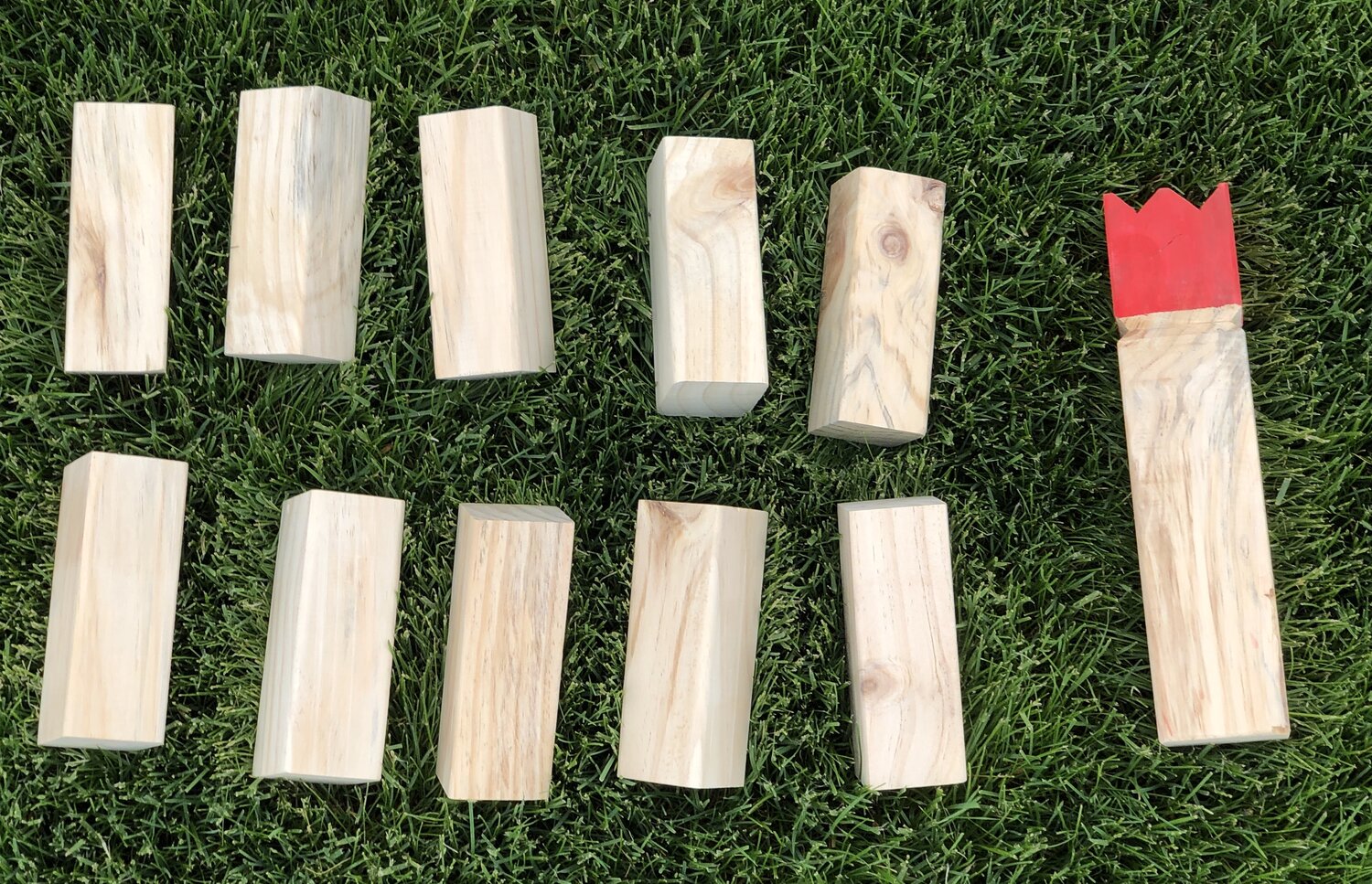 Knock down all your oppenent’s Kubbs and the king Kubb to win this game!