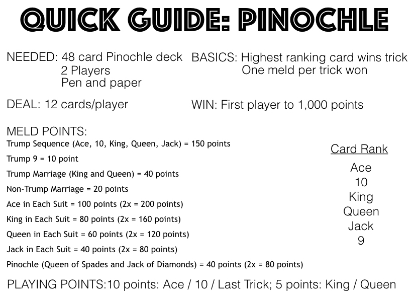 Find the video tutorial and written explanation for how to play four player pinochle, followed by two player pinochle, below.