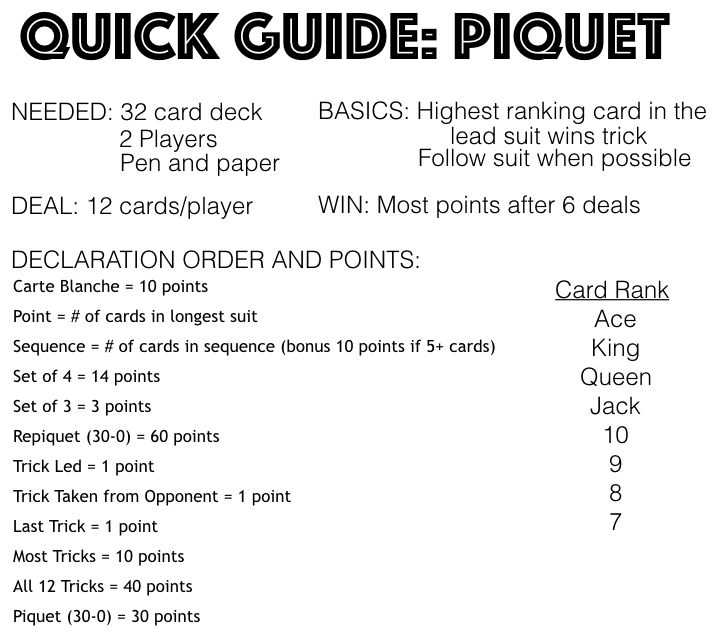 Find the video tutorial and written explanation for how to play the card game piquet below.