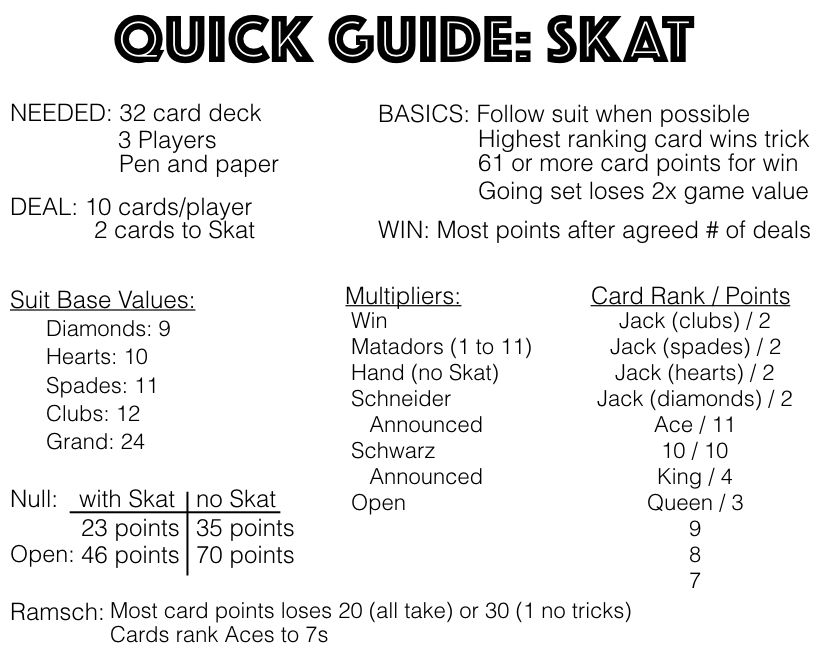 Find the video tutorial and written explanation for how to play the card game skat below.