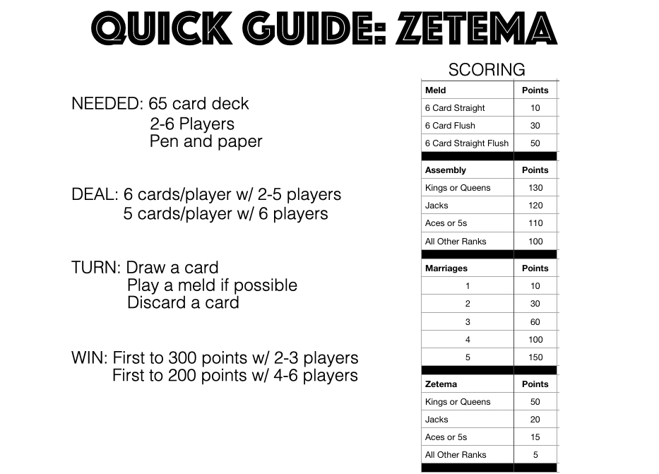 Zetema is an exciting, rummy style card game for two to six players.